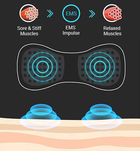 The EMS Massager works by sending safe electrical impulses to the muscles, causing them to contract and relax, which can help to alleviate muscle pain, improve circulation, & tone the muscles.
